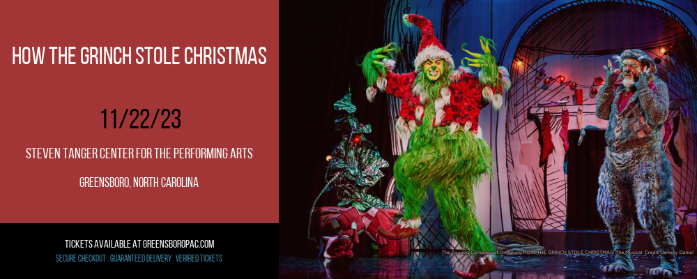 When Broadway gets it right, they absolutely get it right! How The Grinch Stole Christmas now performing at Steven Tanger Center for the Performing Arts has been an phenomenal hit with fans, friends and families all across the country, with audiences often raving about it being one of the greatest shows ever! A theatrical extravaganza that really over delivers, there are screams, cheers, tears and the effect is genuinely electric! It would be a shame for you and your family to miss out on this spectacular night out. How The Grinch Stole Christmas has received masses of critical acclaim along with loads of awards making How The Grinch Stole Christmas one of the top shows ever, now people are travelling across the state to come and see this very performance at Steven Tanger Center for the Performing Arts in Greensboro, and that’s not all, with all the assorted entertainment available in and around Greensboro you can have an entire night of fun that’s suitable for the whole family. Tickets are on sale now so go ahead and mash that buy button right now for Wednesday 22nd November 2023, don’t delay, these will sell out fast as this is one of the more anticipated events at Steven Tanger Center for the Performing Arts in Greensboro for this year.